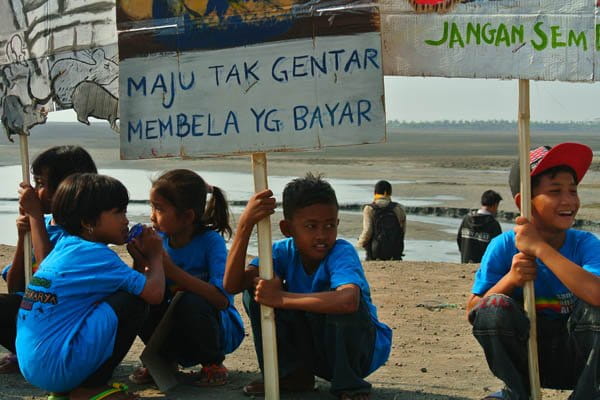 Keterangan foto utama: Mereka memandangi desa mereka yang sudah hilang, tertutup lumpur semburan lumpur Lapindo. Foto: Petrus Rizki/ Mongabay Indonesia