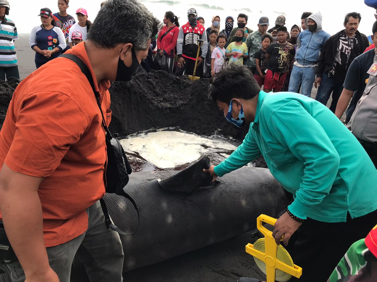 Kiki Riski Arisandy, Koordinator BPSPL Denpasar Wilayah Kerja Jatim mengatakan bangkai dikubur sekitar pantai, karena kesulitan alat berat. Ia menyebut tidak ada pengambilan sampel atau nekropsi untuk menyelidiki kematiannya.