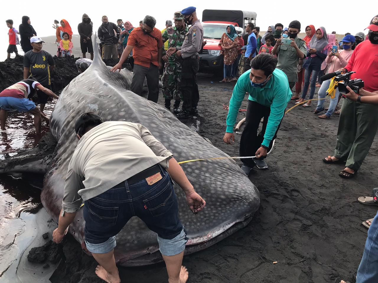“Saya identifikasi agar masuk database,” sebutnya. Kasus hiu paus yang mati terdampar Sabtu (30/8/2020) diketahui warga pada pagi hari. Karena ukurannya yang sangat besar, warga berbondong melihat dan berfoto-foto di sekitar bangkai.