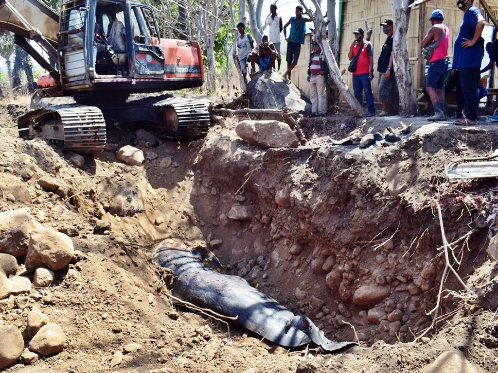 “Kami tidak diberitahu oleh petugas BKSDA NTT soal penguburan bangkai paus di tempat ini. Harusnya diberitahukan terlebih dahulu kepada warga dan lokasinya harus jauh dari pemukiman warga,” sesalnya.