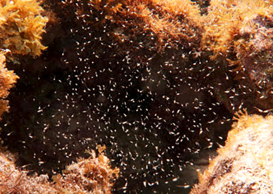 Mereka juga sangat bangga dengan hasil buminya, dan akan mengusir makhluk apa pun yang terlalu dekat – kecuali kawanan zooplankton kecil yang disebut udang mysid, yang ‘menyuburkan’ budidaya alga sang ikan.