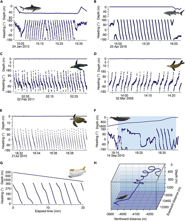 Para ilmuwan mengumpulkan data saat hewan yang ada di antara Kepulauan Cape Verde, lepas pantai Afrika Barat Daya hingga Okinawa, Jepang, yang sedang mencari makan, berenang ke rumah, dan kembali setelah bersarang. Lingkaran-lingkaran itu berkisar dari hanya beberapa hingga lusinan berturut. Para ilmuwan melihat sebagian besar lingkaran yang tercatat selama mencari makan, terutama di kalangan hiu.