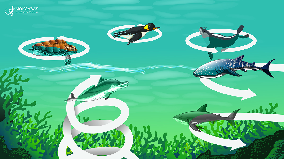 “Memeriksa pergerakan 3D hiu, penyu, penguin, dan mamalia laut dengan gambar beresolusi tinggi, kami melaporkan penemuan peristiwa hewan berputar berurutan lebih dua kali pada kecepatan sudut yang relatif konstan,” tulis Narazaki dan rekan penulisnya dalam penelitian mereka, di iScience.