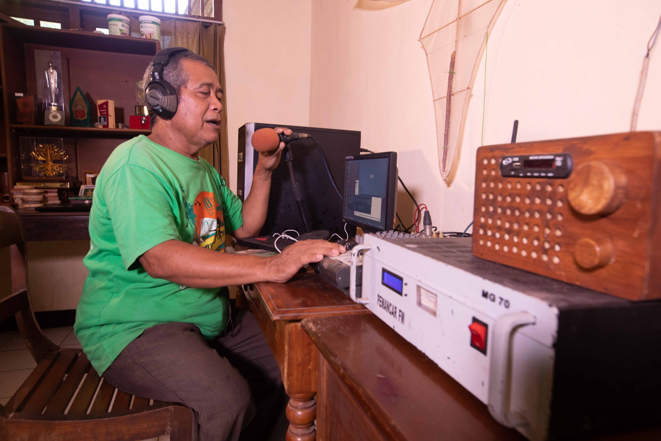 “Dulu ceritanya, ketika kita bangun kelompok ini, setelah jalan 6-7 tahun kita merasa lelah. Padahal kita merasa belum apa-apa, masih jauh. Lalu saya tawarkan ke teman-teman, apakah butuh media lain, bagaimana kalau radio. Usul itu lalu disetujui anggota kelompok.”