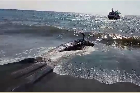 - Pada tubuh paus terdapat lubang, tapi belum bisa dipastikan penyebab kematiannya.