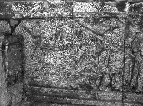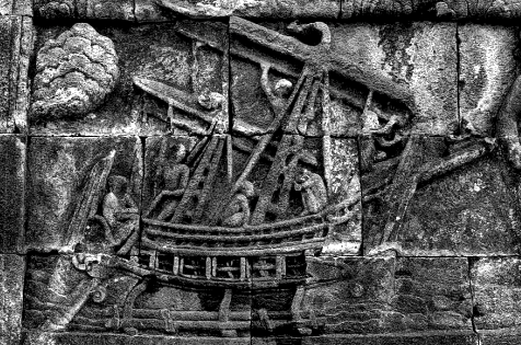 - Bentuk perahu era Majapahit terpahat dalam relief pandapa teras luar Candi Penataran, Blitar. Kapal besar yang digerakkan layar dan dayung renteng.
