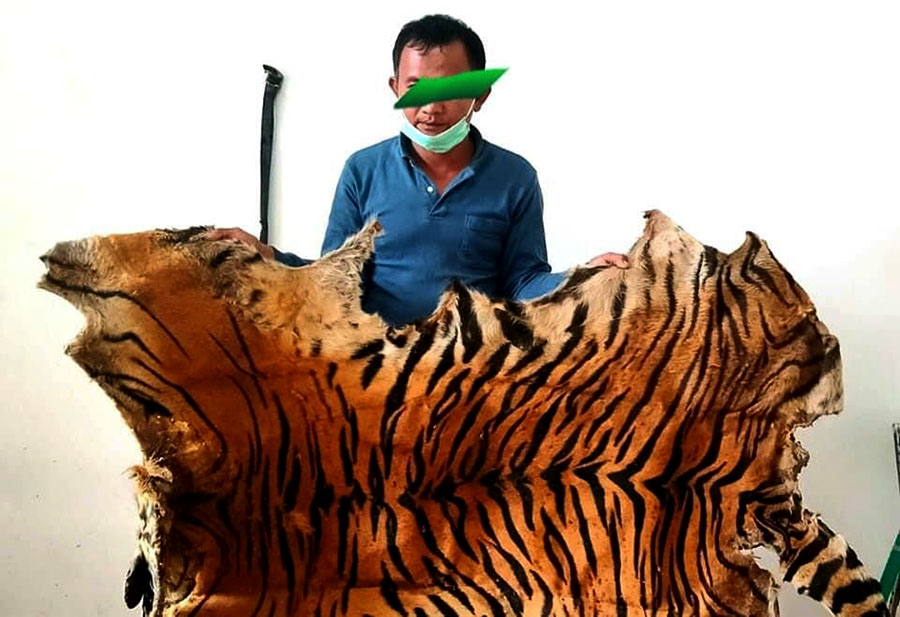 Balai Pengamanan dan Penegakan Hukum [Gakkum] Kementerian Lingkungan Hidup dan Kehutanan [KLHK] Wilayah Sumatera menangkap penjual 3 lembar kulit dan tulang-belulang harimau, serta 9 kilogram sisik trenggiling, pada 13 Agustus 2021 lalu.