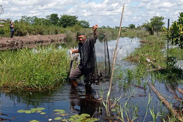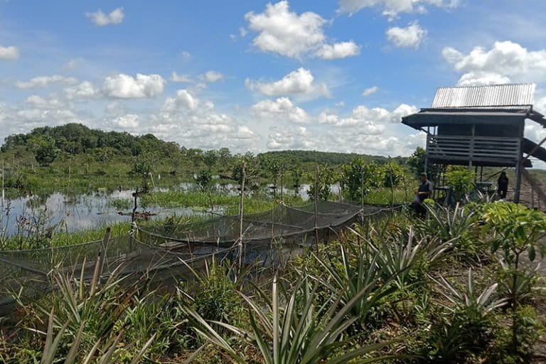 Selain menanam nyamplung, Nungcik juga mengembangkan kolam ikan di lahannya. Jenisnya lele dan juga ikan yang cocok di gambut seperti tembakang, betok, dan gabus.