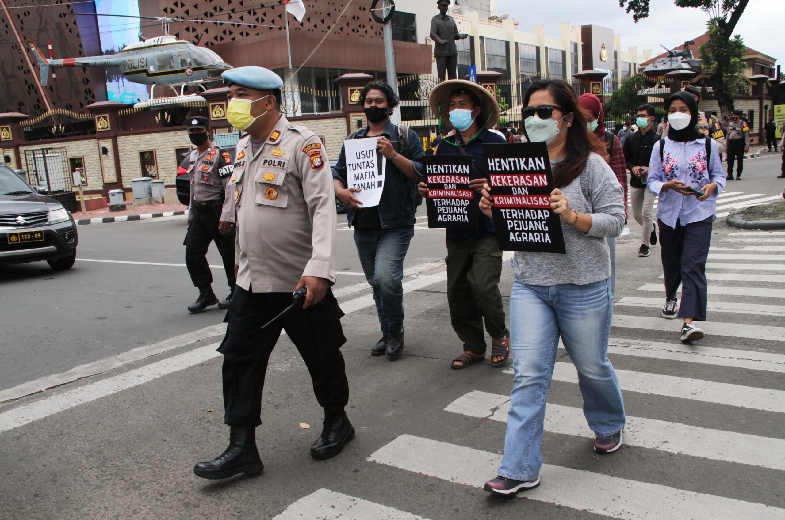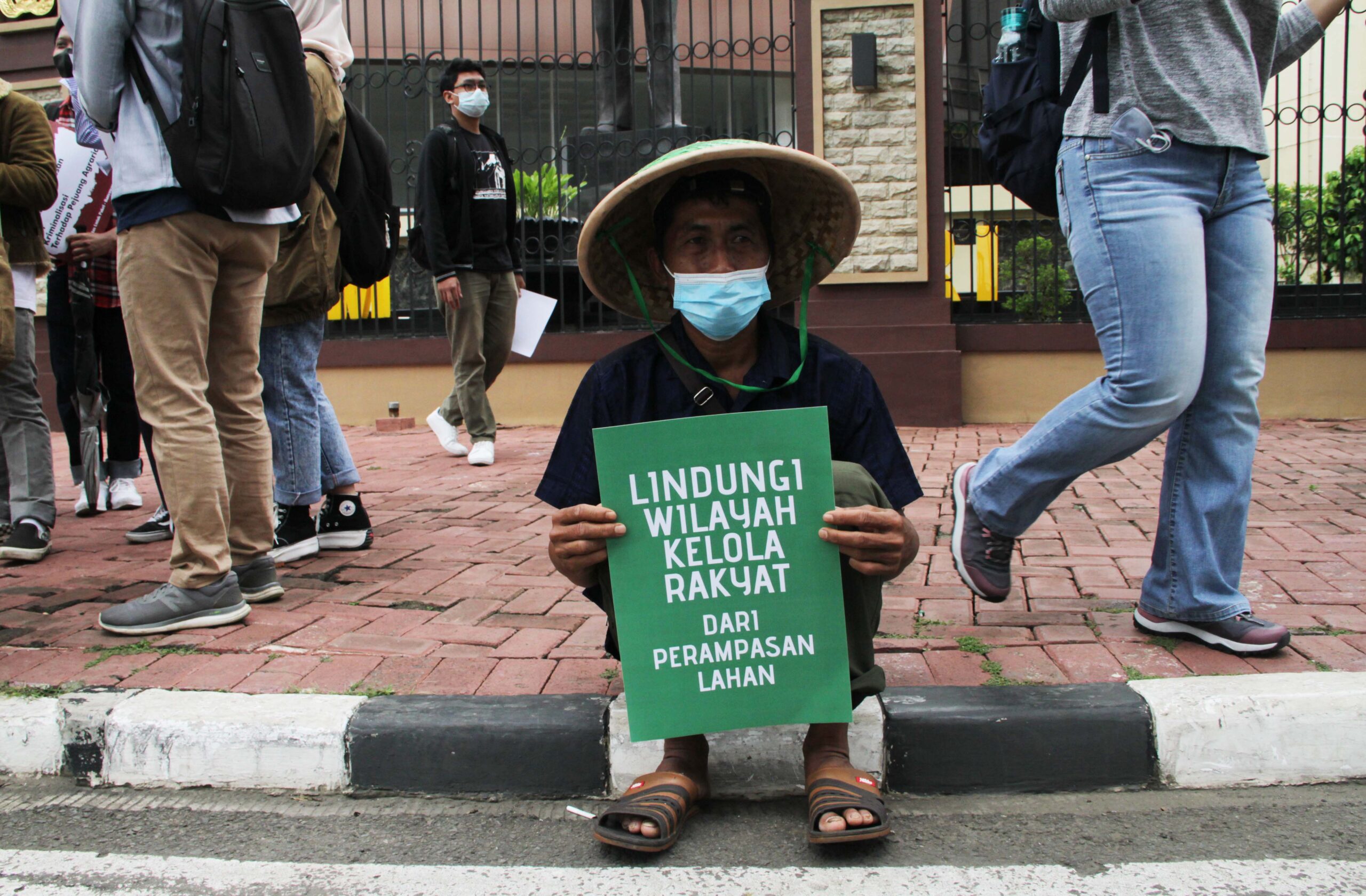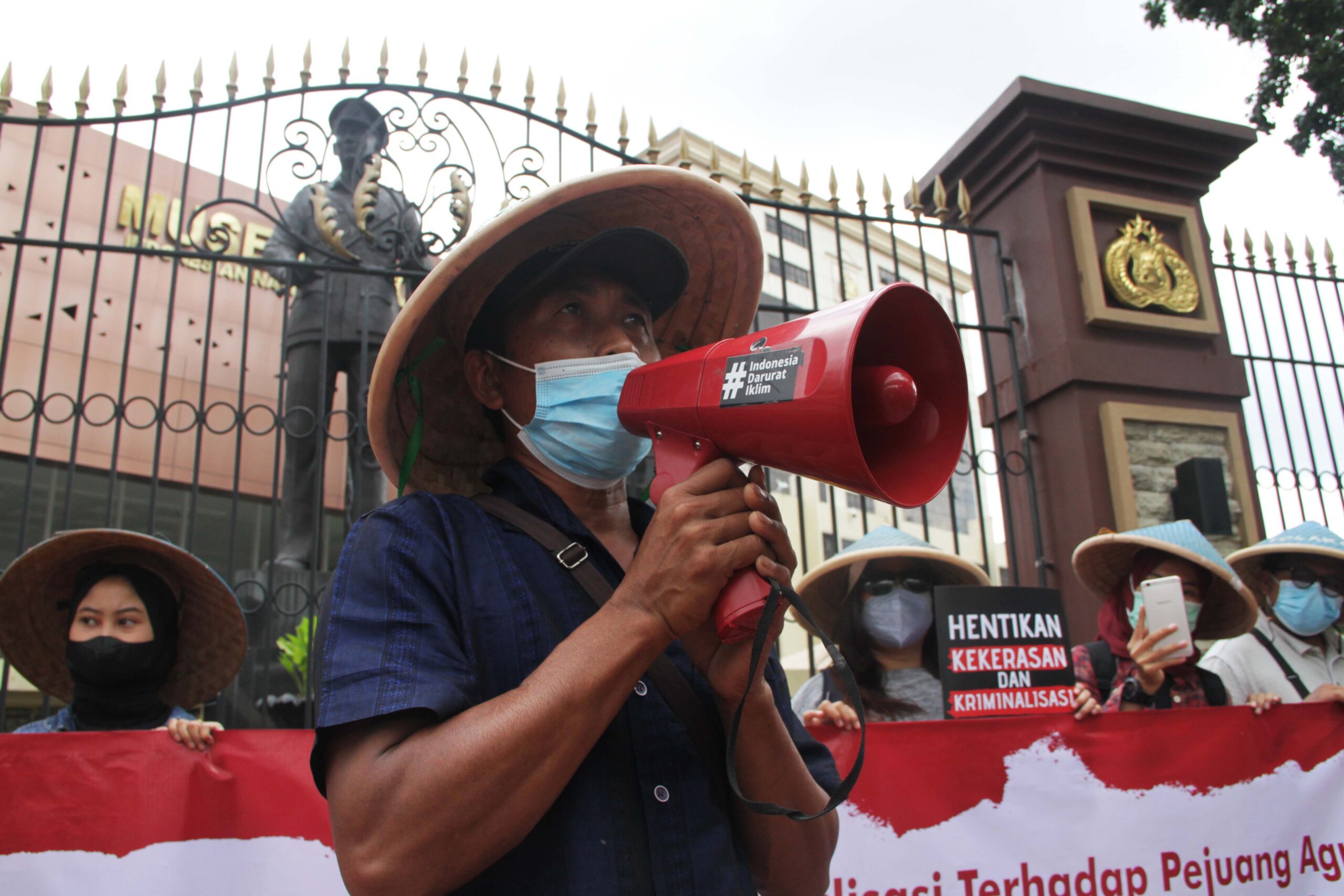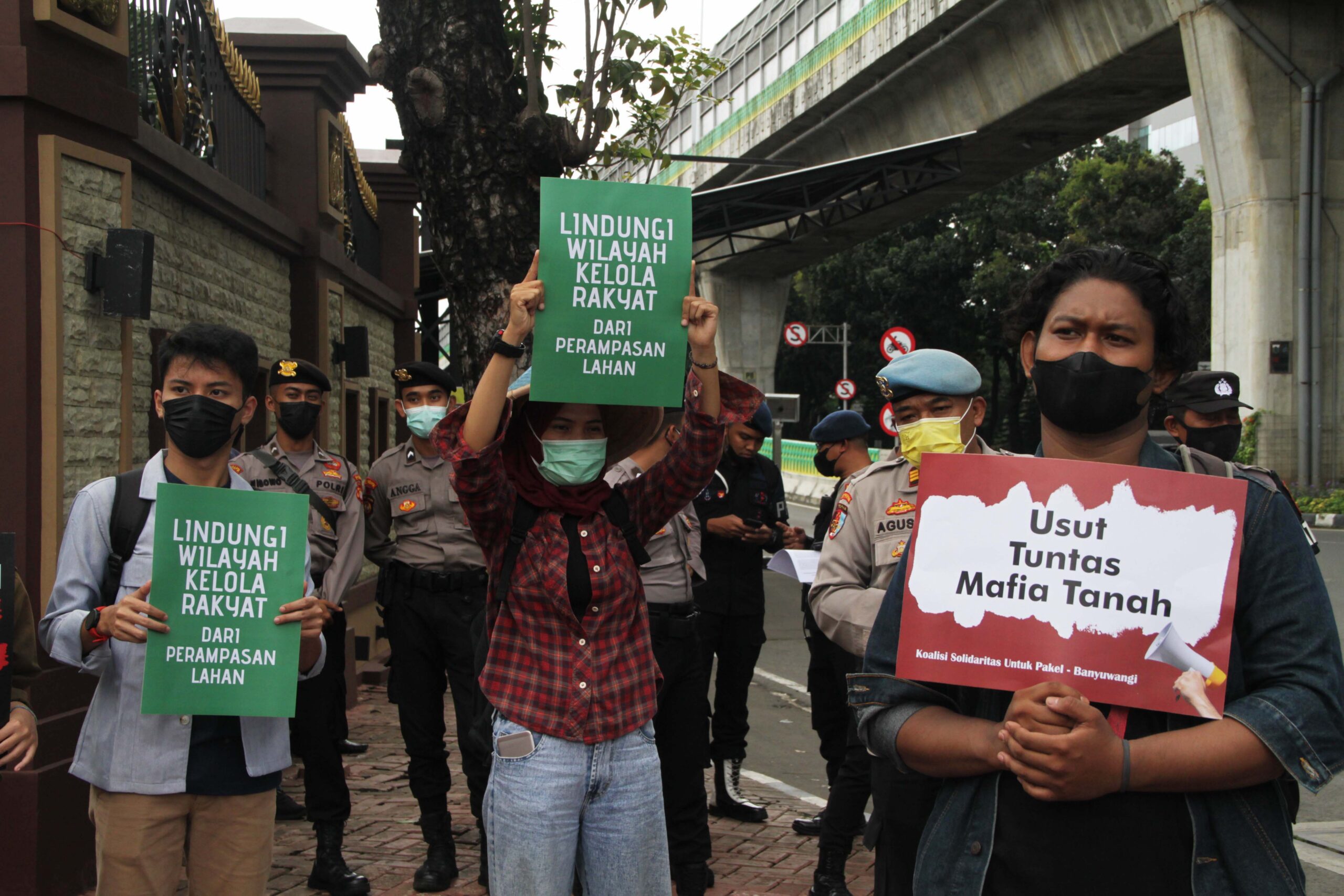 - Warga Desa Pakel, Kecamatan Licin, Kabupaten Banyuwangi, Jawa Timur didampingi aktivis mahasiswa dan Walhi, menyampaikan aspirasinya terkait konflik lahan, kriminalisasi dan intimidasi oleh aparat kepolisian yang dialami para petani Desa Pakel ke Mabes Polri Jakarta, Jum’at (21/01/2022).