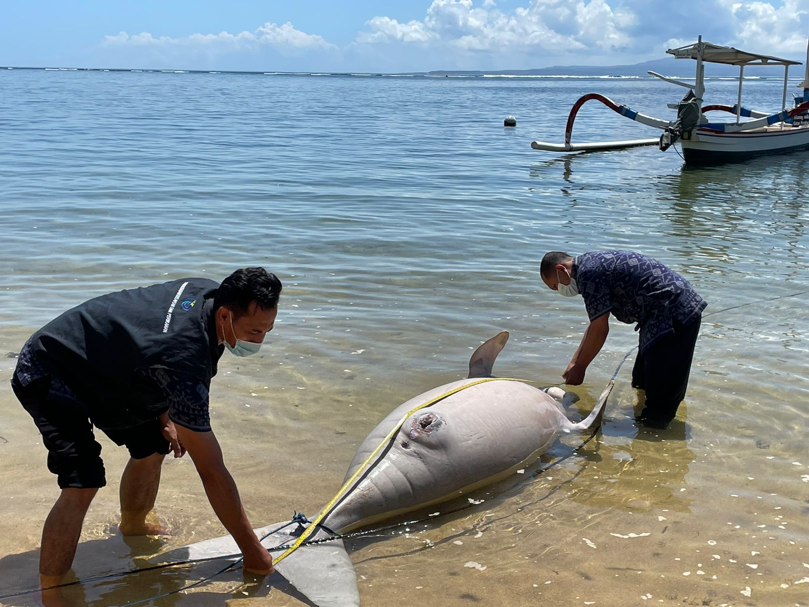 Dugong akhirnya dikubur tanpa nekropsi karena dinilai sudah membusuk di area pantai dengan jarak kurang lebih 15 meter dari batas pasang air laut. Proses penanganan ini melibatkan sejumlah pihak seperti PSDKP Benoa, Polairud Polda Bali, Polairud Resta Denpasar, BKSDA Bali, TCEC Serangan, dan masyarakat sekitar.