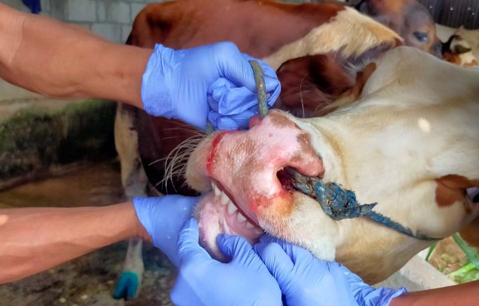 Kondisi sapi di Karantina itu, katanya, mulut berbusa, pincang. Lidah, gusi dan kaki sudah melepuh.