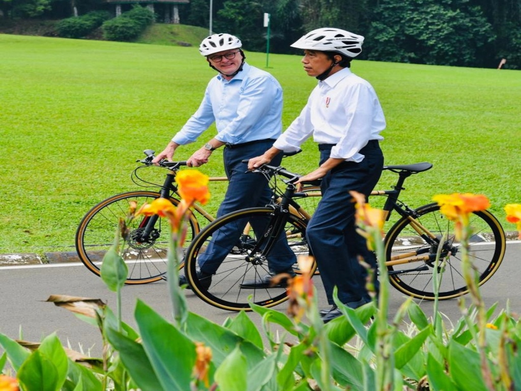 Ada yang menarik dalam rangkaian penyambutan resmi Perdana Menteri (PM) Australia Anthony Albanese, di Istana Kepresidenan Bogor, Jawa Barat, Senin (6/6/2022). Usai kedua pemimpin negara ini menanam pohon, Presiden Joko Widodo mengajak PM Albanese untuk bersepeda pagi.