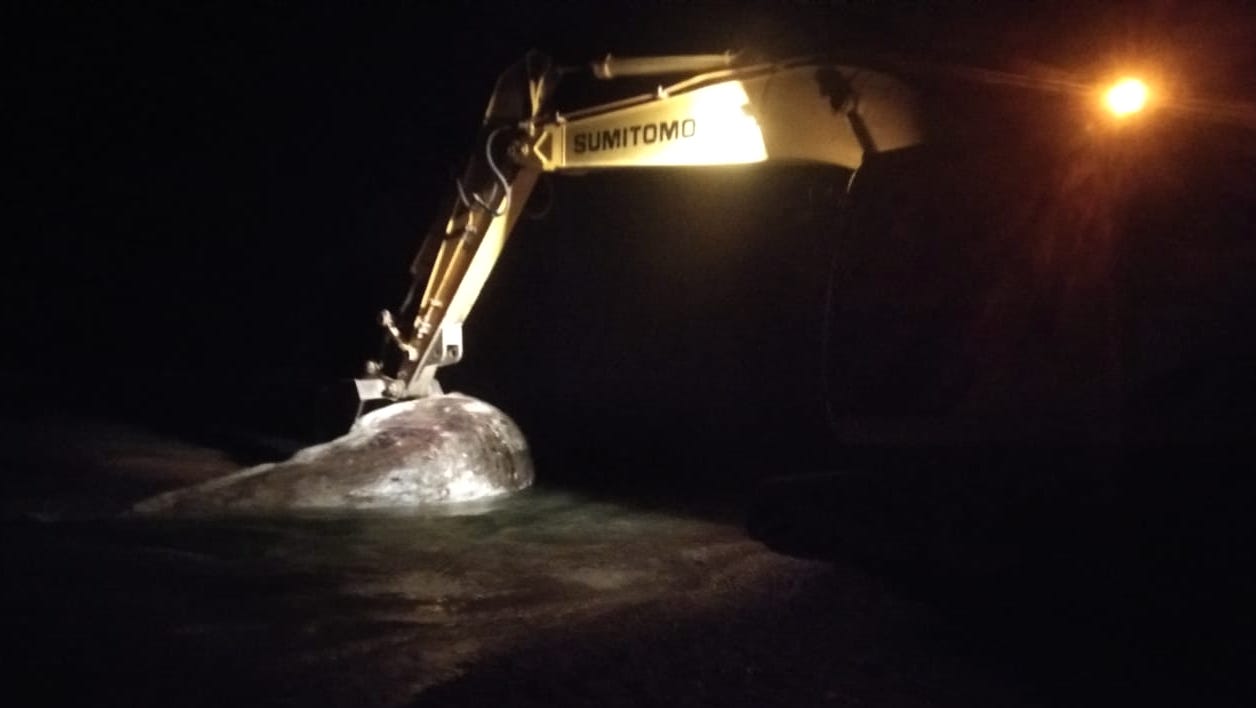 Proses pemindahan bangkai Paus Sperma ke lokasi penguburan memakan waktu berjam-jam. Bahkan penguburan dilakukan hingga malam hari. Bahkan semakin banyak warga yang datang menyaksikan.