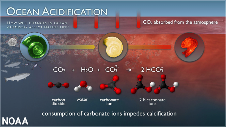 - Proses pengasaman laut dikatakan sebagai ancaman utama bagi kehidupan laut karena kerusakan organisme pengapur dan spesies laut lainnya. Dampak keseluruhan dari pengasaman tidak diketahui, tetapi pada titik tertentu penurunan pH bisa menjadi bencana biologis.
