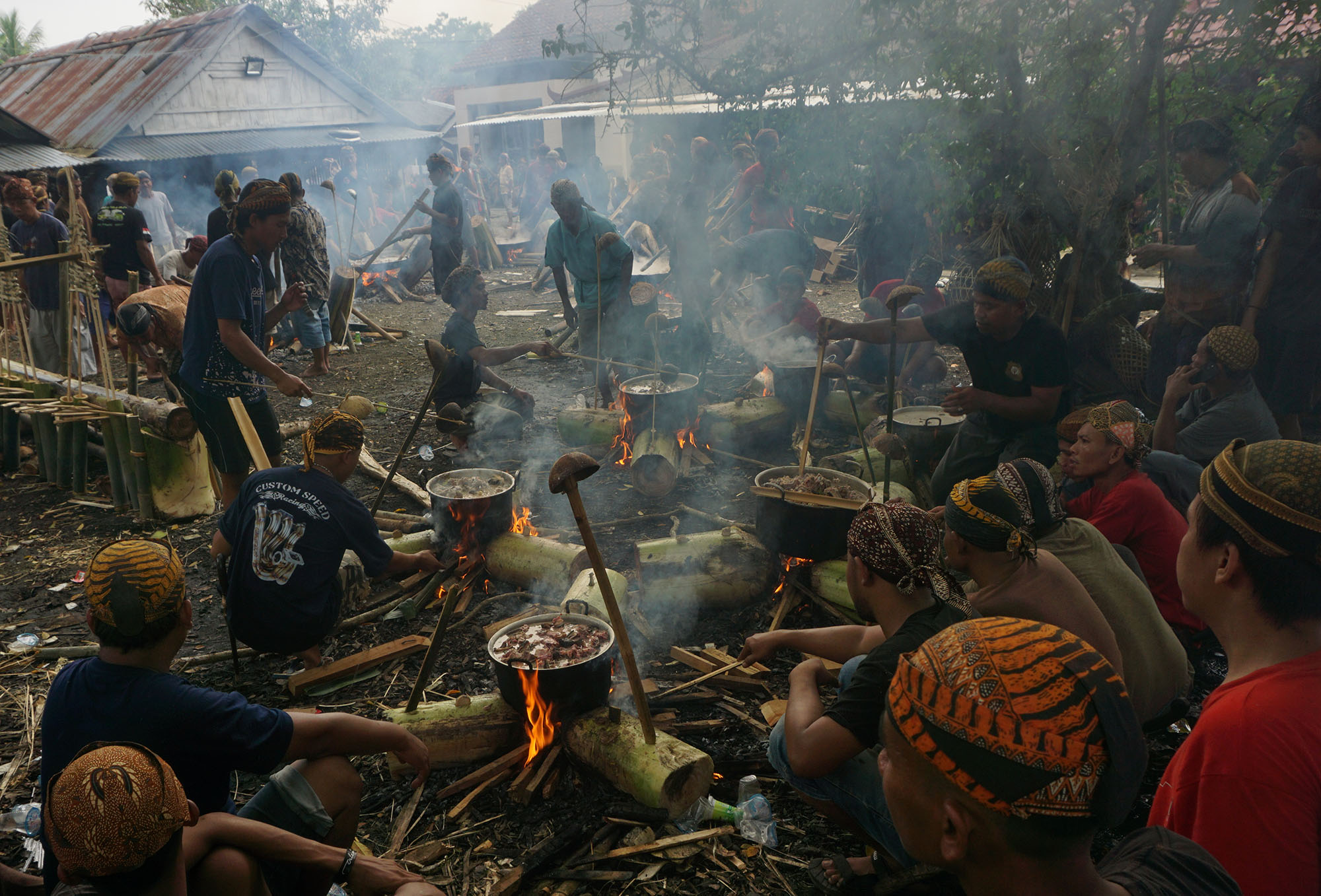 Saat beristirahat pada siang hari, mereka menyantap makanan yang dibawanya dari rumah. Yang menarik adalah komunitas adat itu tidak menggunakan bungkus berupa kertas makanan, melainkan memakai daun jati. Kebersamaan yang guyub terlihat begitu jelas. Mereka tidak lagi harus menjaga jarak atau mengenakan masker seperti ketika kasus Covid-19 tengah tinggi-tingginya.
