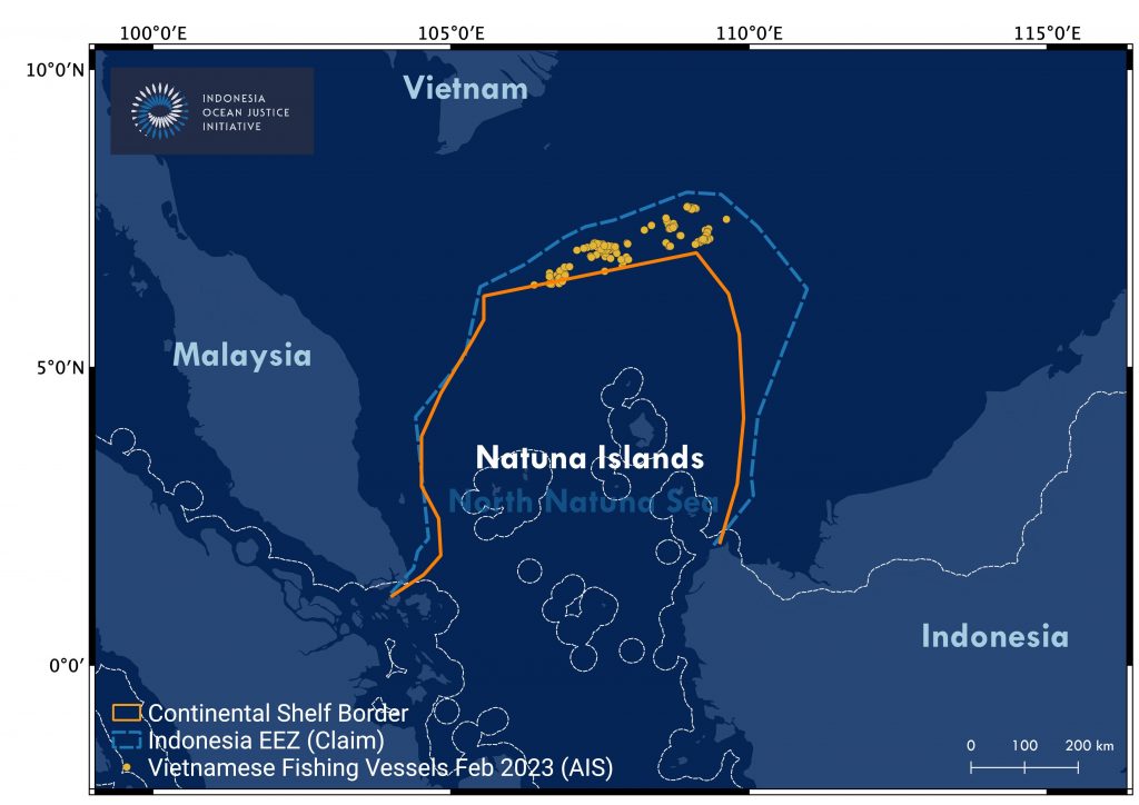 Berkaitan dengan Indonesia dan Vietnam, jauh sebelum disepakatinya garis batas ZEE kedua negara pada Desember 2022, kapal-kapal ikan Vietnam telah beroperasi secara intensif di area tumpang tindih klaim ZEE Indonesia-Vietnam di LNU dan bahkan jauh sampai ke bagian selatan dari area tumpang tindih klaim ZEE yang merupakan wilayah ZEE Indonesia.