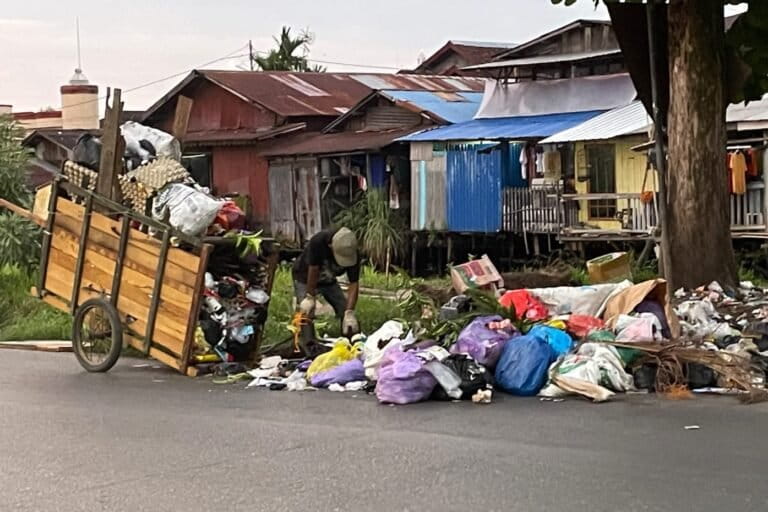 Perahu bermesin—biasa disebut kelotok– melintas di perairan Sungai Martapura, Kelurahan Basirih, Banjarmasin Barat, Kalimantan Selatan, sore itu awal Juni lalu. Tiba-tiba dari atas perahu, seorang pria membuang satu bundelan sampah terbungkus plastik kecil ke aliran sungai.