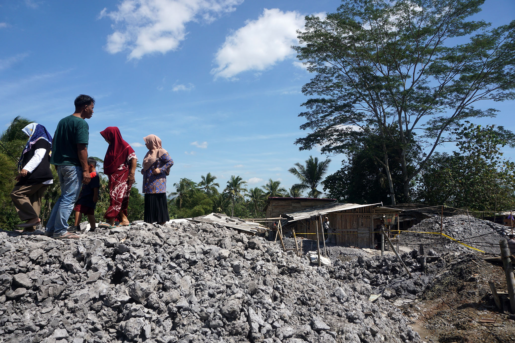 “Memang kalau masuk saya tidak menggunakan apa-apa. Hanya berbekal senter saja. Kalau pakai sepatu ribet banget malah. Makanya, hanya pakai kaos dan langsung turun ke bawah. Saya biasanya nyeker (tidak memakai sepatu),”kata Agus (40) penambang asal desa setempat.