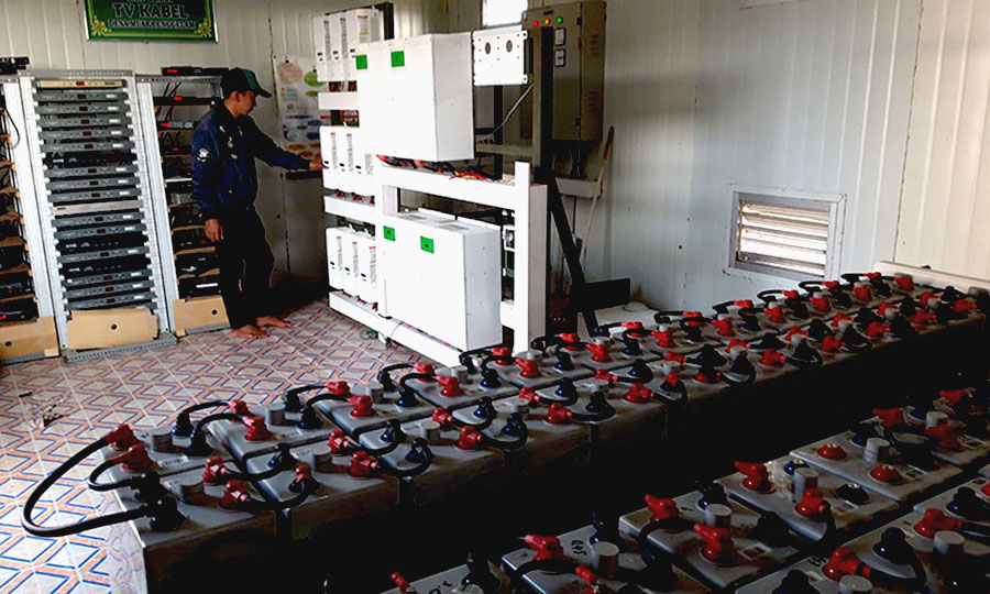 “Kami langsung membuat panggung untuk wadah panel ukuran 20 m x 20 m dengan tinggi tinggi 15 meter. Arahnya, menghadap matahari. Untuk baterai dan regulator, kami buatkan rumah khusus, di samping panggung panel,” jelasnya.