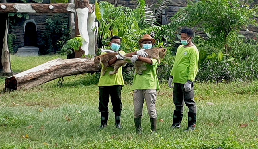 “Tahapan ini untuk memastikan anak singa siap dilepas secara mandiri di kandang peraga.”