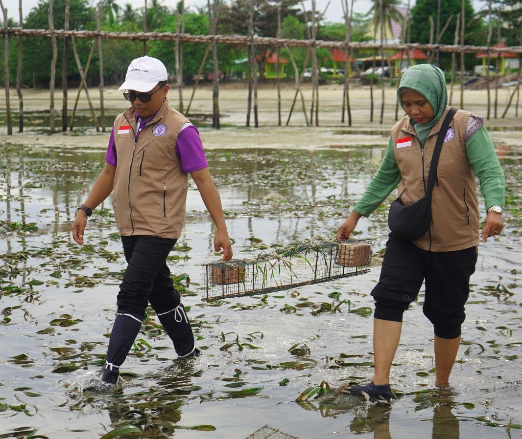 Siti dan anggota komunitas Lamun Warrior lainnya memastikan aksi penanaman ini tidak hanya seremonial belaka. Lamun Warrior melakukan pemantauan kondisi bibit yang sudah ditanam.