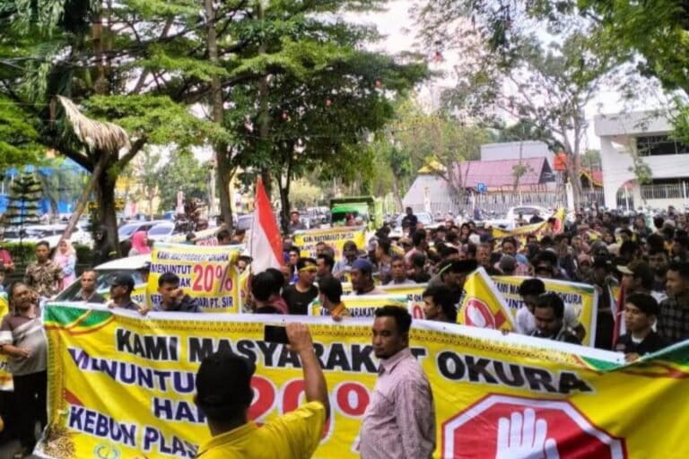 Masyarakat Tebing Tinggi Okura terus menuntut kejelasan kebun plasma dari perusahaan perkebunan sawit, PT Surya Intisari Raya (SIR). Hingga kini, persoalan kebun plasma sawit masyarakat ini belum tuntas walau Pemerintah Riau mulai menggagas pertemuan para pihak untuk mencari jalan penyelesaian konflik.