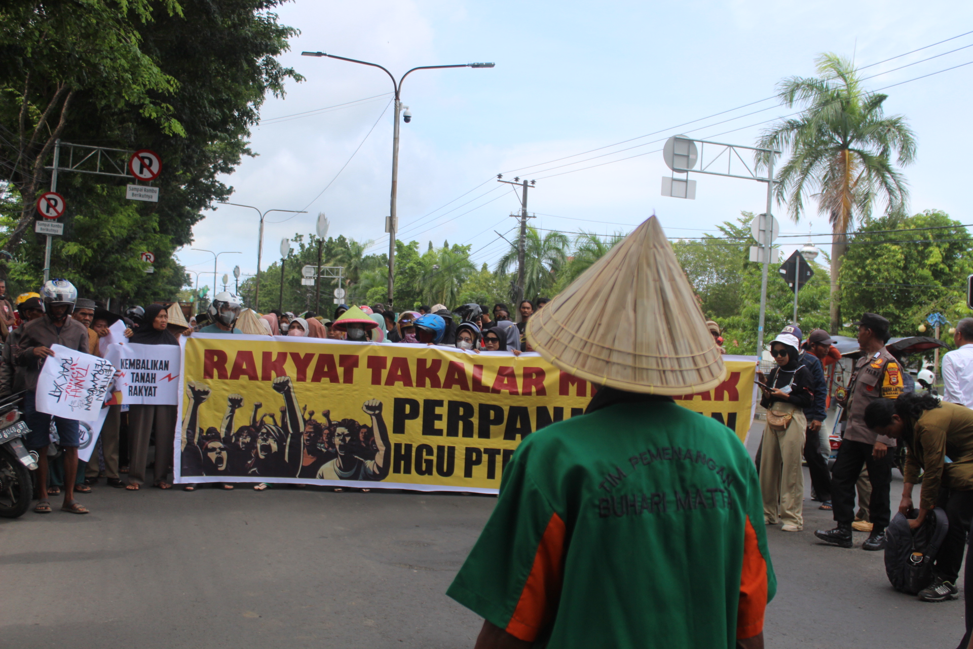 “Puluhan tahun setelah petani dipisahkan dari tanahnya mereka hidup dalam kemiskinan yang diakibatkan oleh kebijakan negara yang mengabaikan hak mereka. Setelah puluhan tahun tanah warga dirampas, barulah perusahaan memiliki legalitas konsesi HGU di tahun 1994 dan 1998. Tahun ini HGU perusahaan sudah habis, inilah momentum agar tanah petani dapat dikembalikan,” ungkap Supianto, aktivis GRAMT.