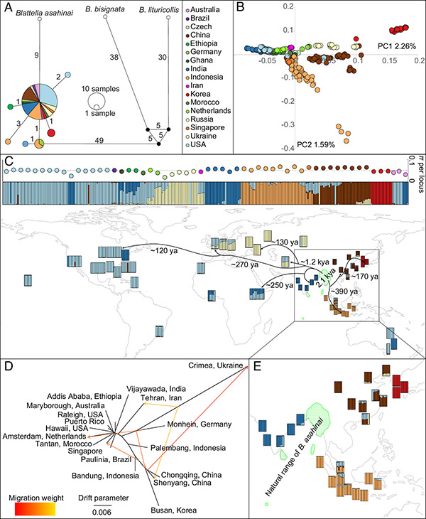 Tidak sesuai dengan namanya, kecoak jerman [Blattella germanica] sebenarnya berasal dari Asia Tenggara. Studi genetik terbaru menyimpulkan bahwa nenek moyang mereka adalah kecoak asia [Blattella asahinai], dan keduanya diperkirakan berpisah sekitar 2.100 tahun lalu.
