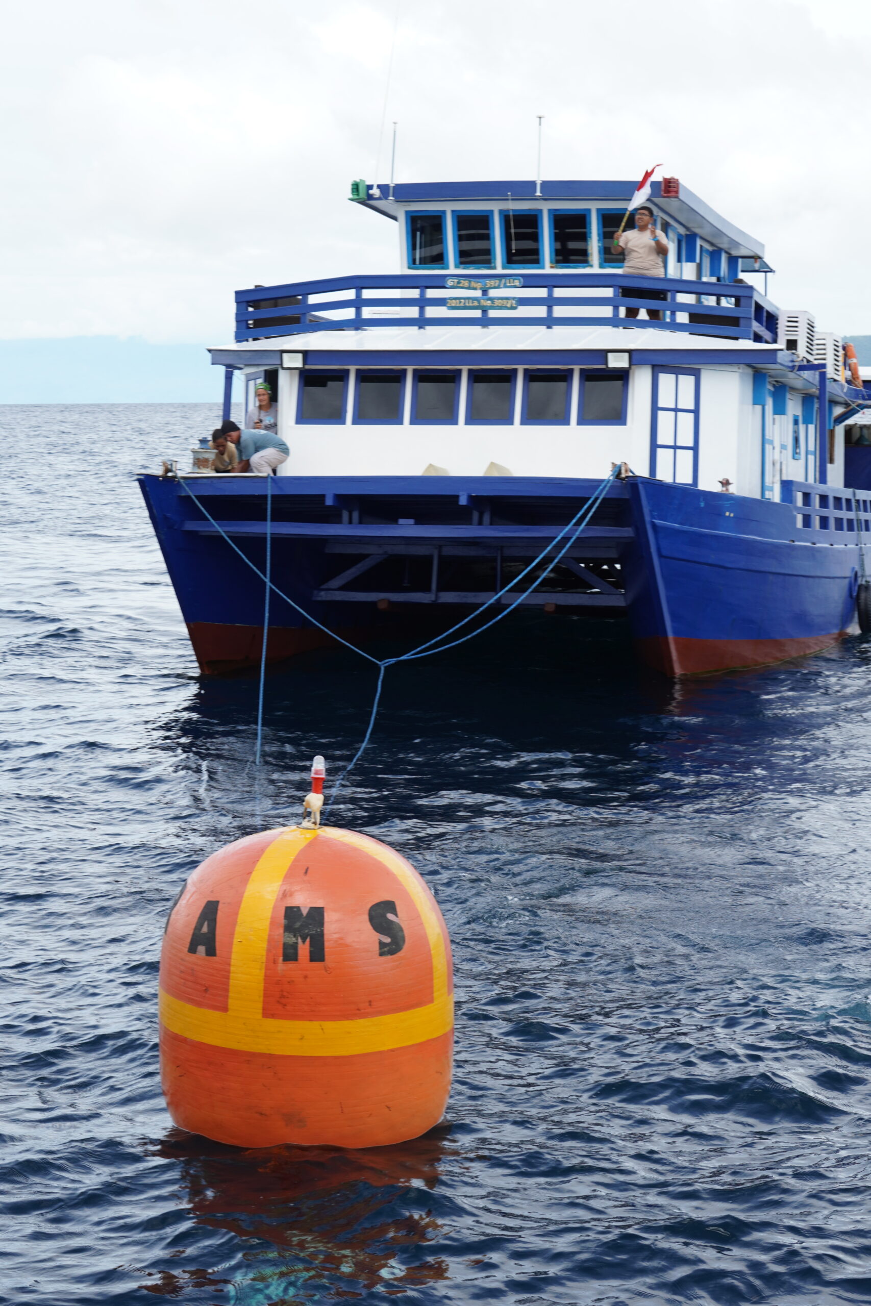 Setelahnya, rombongan sempat memutar ke sekitar lokasi pemasangan mooring dan kemudian kembali ke kampung. Proses pemasangan mooring pun kemudian dilaksanakan dengan melibatkan tenaga ahli yang paham dengan situasi di dalam air.
