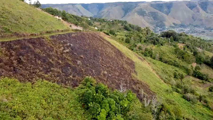 “Sedih menyaksikan kawasan Danau Toba hampir setiap tahun dilalap si jago merah. Dinding Kaldera Toba sepanjang Kecamatan Sitio Tio, Harian, Sianjur Mula Mula sampai ke perbatasan Kabupaten Dairi gosong akibat kebakaran ini,” paparnya, Kamis [18/7/2024].