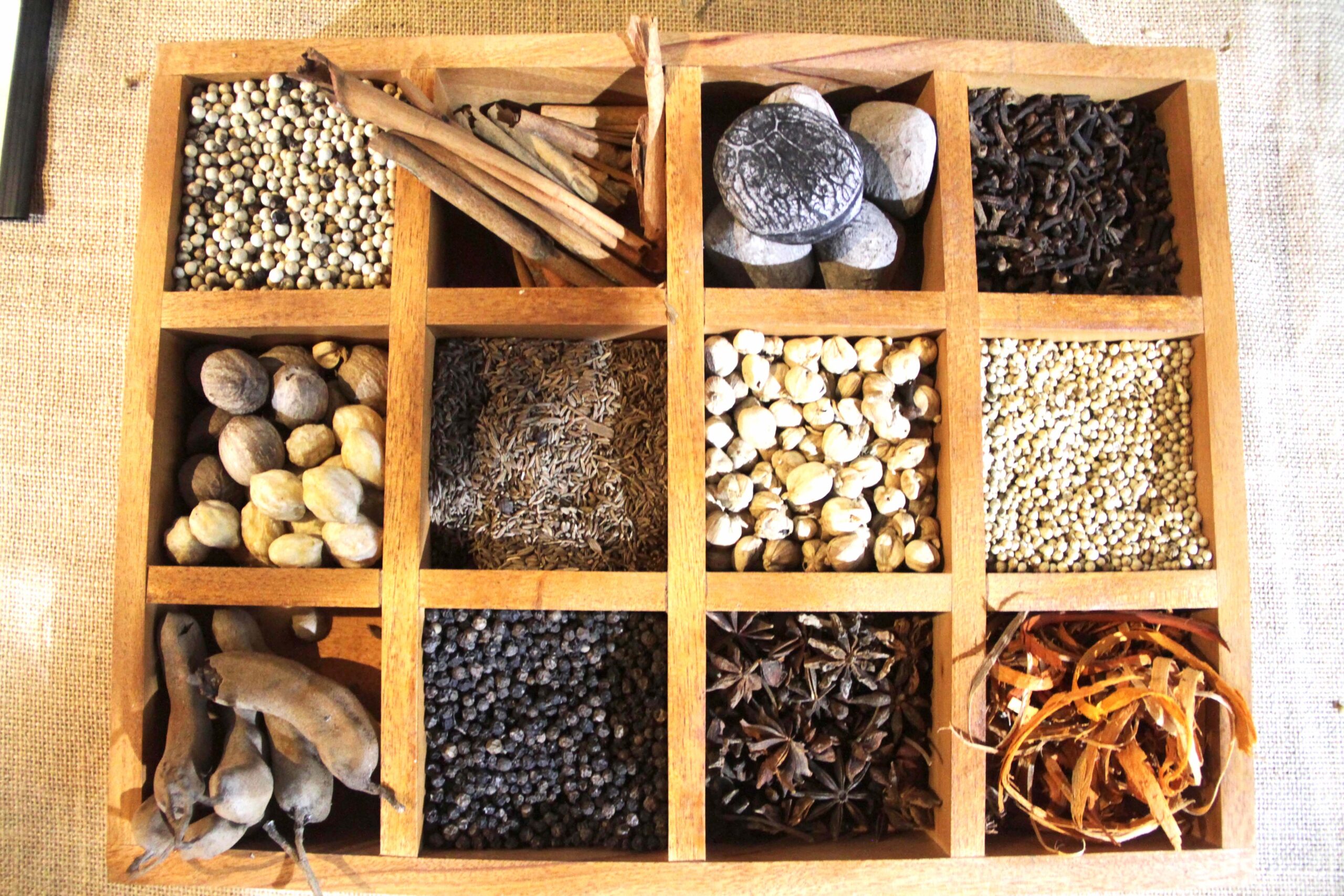 Sejumlah komoditas perasa makanan tertata rapi di Museum Bahari, Penjaringan, Jakarta Utara. Bila didekati aroma keharumannya berasa kuat dan khas. Tak ayal barang berharga yang pernah diperebutkan bangsa Eropa ini secara historis pernah menjadi pilar kejayaan ekonomi maritim nusantara.