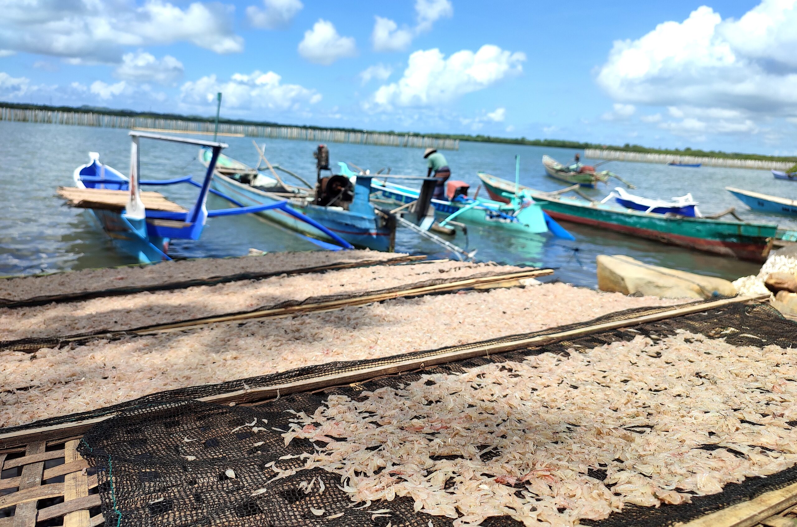 Seluruh hidup keluarga kecil di pesisir Jor, Desa Jerowaru, Lombok Timur, Nusa Tenggara Barat (NTB) ini bergantung pada udang kecil itu. Peluh suaminya selama semalam melaut bisa hilang hanya karena kurang hati-hati menjemur udang. Satu wadah penjemuran itu bisa seharga Rp50.000 jika sudah kering.