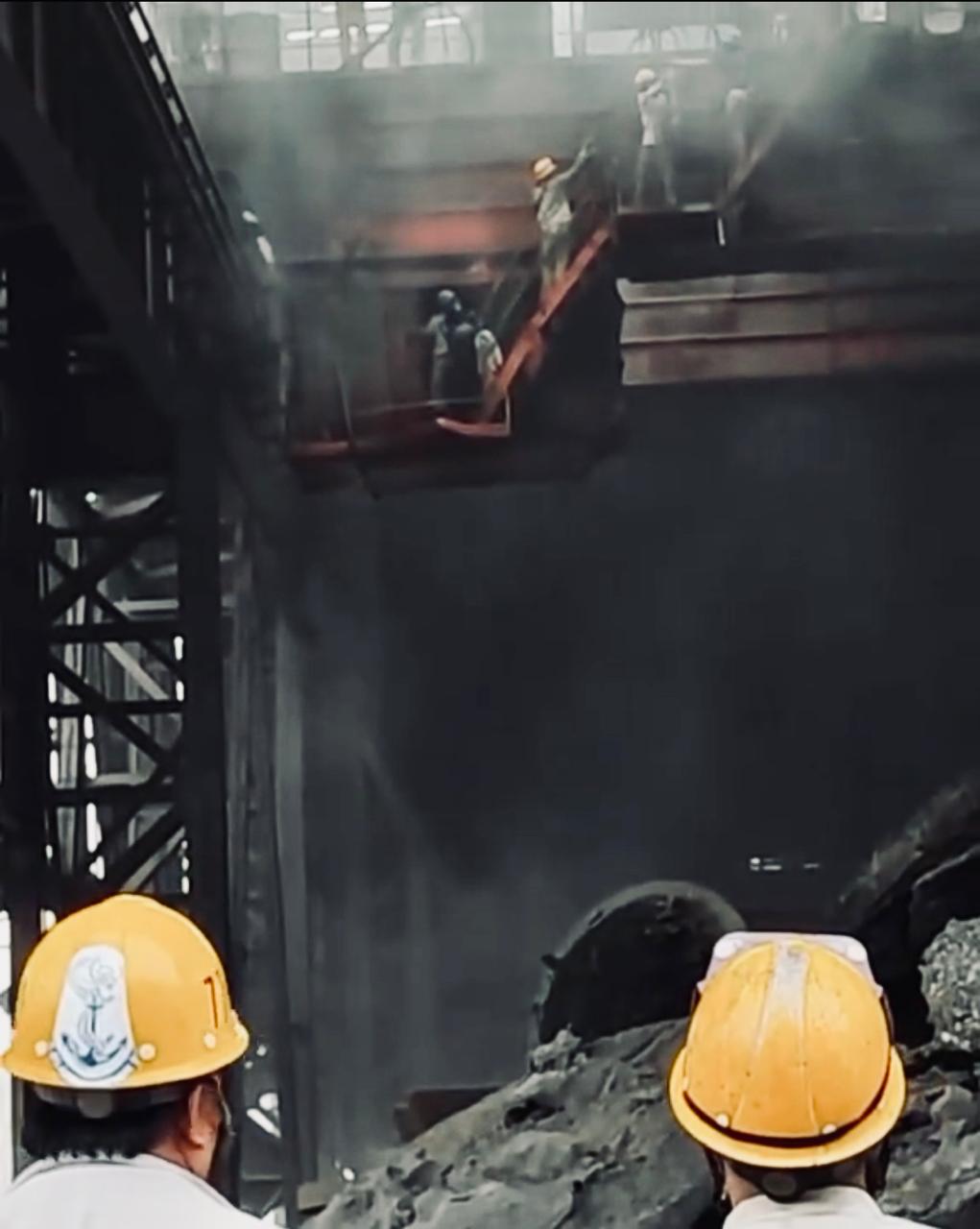 Formen Tiongkok bilang, bagian produksi atau tungku sudah tak ada lagi tong untuk menampung limbah. Arnol jawab, tidak bisa karena di dasar kolam masih ada genangan air hingga harus ditutupi dulu oleh operator loader dengan timbunan dari slag kering.