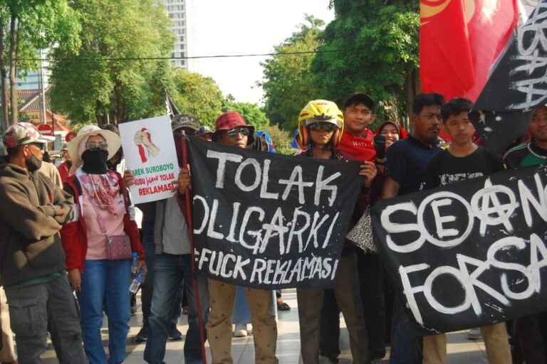 - Masyarakat pesisir Kenjeran dan nelayan aksi unjukrasa di DPRD dan Balai Kota Surabaya 20 September 2024. Mereka protes reklamasi Pantai Kenjeran yang akan merampas ruang hidup 12 perkampungan nelayan antara lain, Tambakrejo, Tambakwedi, Nambangan, Cumpat, Kejawan, Kenjeran, Sukolilo, Kalisari, dan Wonorejo.