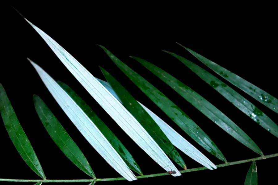 Agar bisa menggambarkan dengan tepat spesies ini, para ilmuwan perlu memastikan keberadaan buah dan bunga. Namun, keduanya belum diperoleh. Meski demikian, penampilan spesies ini sangat khas. Permukaan daun bagian atas berwarna hijau mengkilap, sementara bagian bahwa berwarna putih kapur.