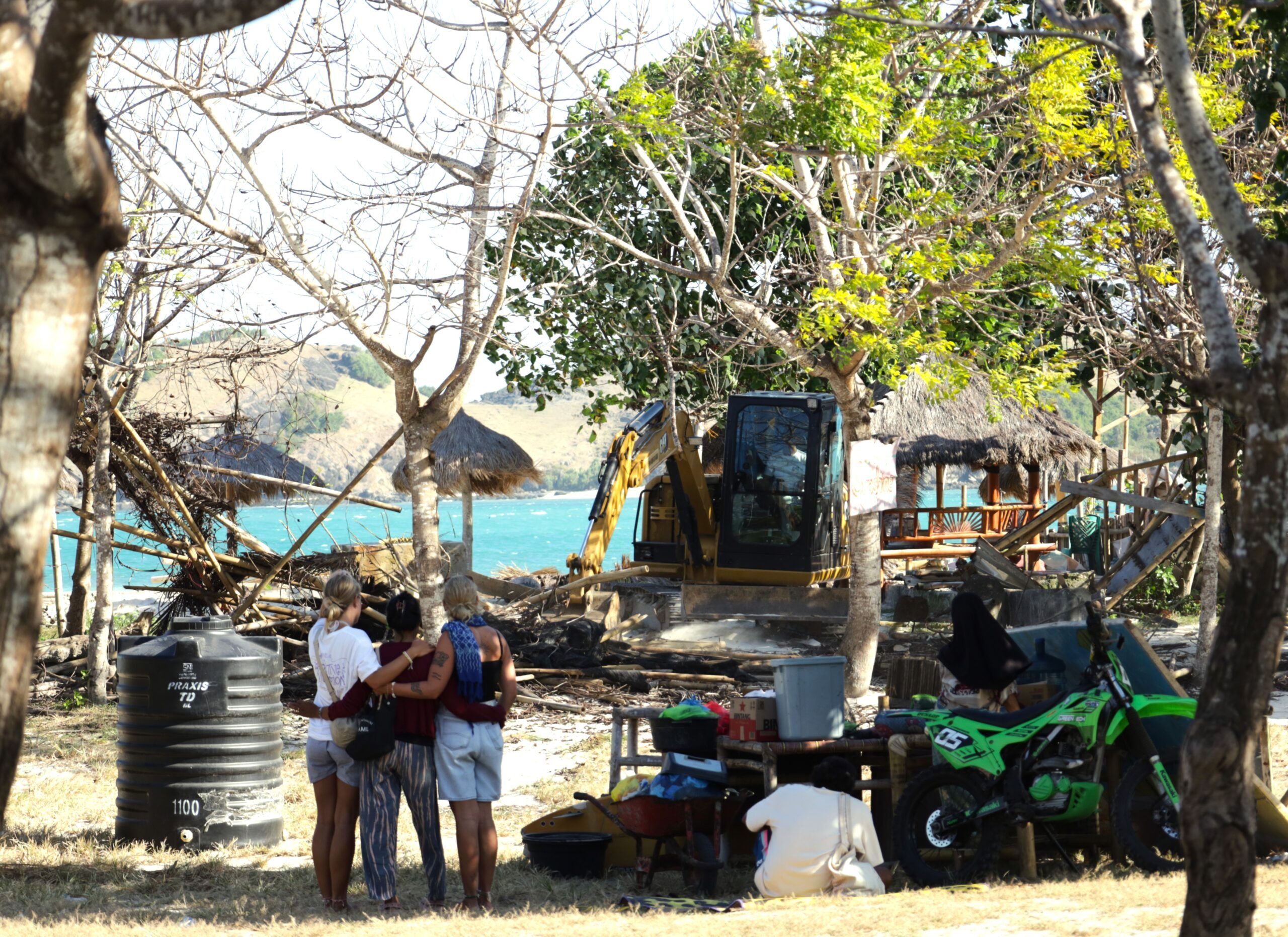 Beberapa wisman yang melihat aksi pembongkaran itu merekam dengan ponsel mereka. Lalu Sungkul meminta mereka tidak sembarangan merekam dan meminta wisatawan yang sedang berjemur untuk menyingkir dari lokasi. Kepada mereka, Lalu berdalih akan menata kawasan itu untuk pariwisata.
