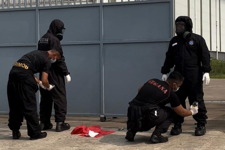 Atas cemaran radiasi radioaktif di Kawasan Industri Cikande, KLH bersama Satuan Kimia Biologi dan Radioaktif Gegana Korps Brimob Polri melakukan dekontaminasi di PMT dan lima titik lain yang terpapar Cs-137.