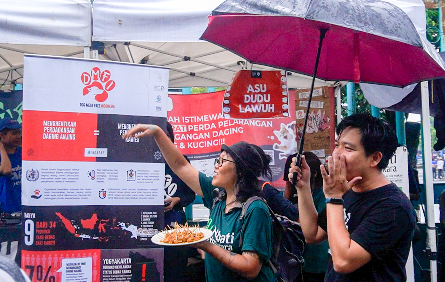 - Animal Friend Jogja (AFJ) yang tergabung dalam DMFI menginisiasi Nabati Nusantara, program untuk menunjukkan pilihan makanan lain yang berbahan nabati, tetapi mampu menghidangkan santapan layaknya daging, untuk mengatasi konsumsi daging anjing.