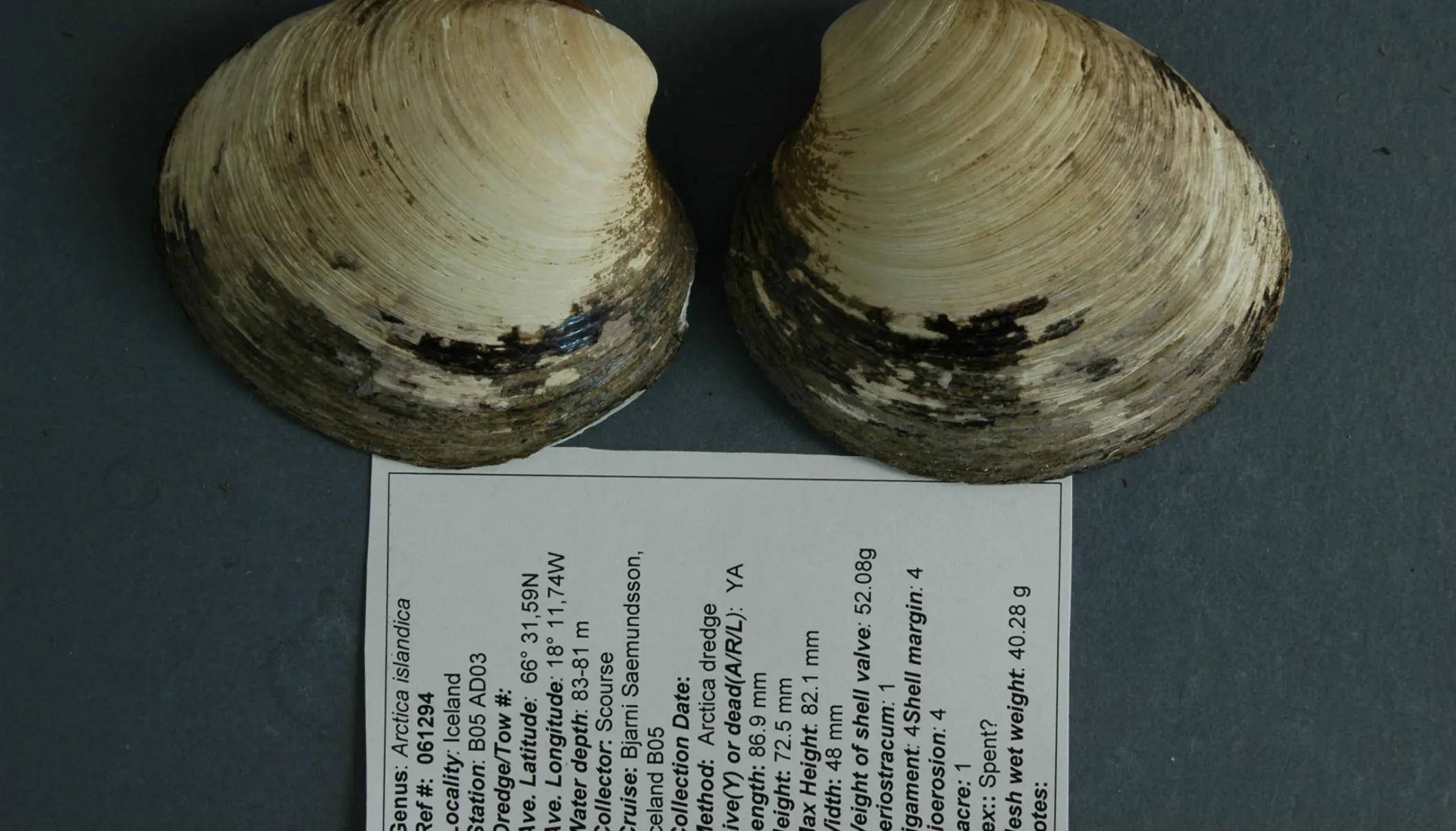 Penelitian tersebut memaparkan metodenya: “Cangkang A. islandica diendapkan sebagai serangkaian peningkatan pertumbuhan tahunan (pertumbuhan cepat) yang dipisahkan oleh garis pertumbuhan sempit (pertumbuhan lambat atau penghentian pertumbuhan). Sifat tahunan dari peningkatan ini telah dibuktikan berdasarkan profil isotop oksigen stabil musiman dan eksperimen penandaan serta penangkapan kembali.”