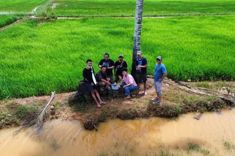 “Kalau dulu kan air masih jernih, sekarang cokelat ini, masuk ke sawah lumpurnya. Sekarang 10 karung satu hektar (hasil panen padi).”