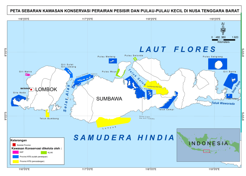 - Di Nusa Tenggara Barat (NTB) terdapat 16 kawasan konservasi perairan, 14 diantaranya diinisiasi dan dikelola oleh pemerintah provinsi.
