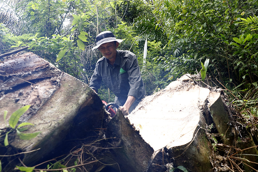 Secara teknis, kami mengatur penebangan di lapangan yang selanjutnya dikoordinasikan dengan Dinas Kehutanan dan Perkebunan Aceh Tamiang dan Kesatuan Pengelolaan Hutan (KPH) III Aceh. Ini terkait target dan progres. “Sawit yang ditebang ini memang berbatasan langsung dengan hutan lindung yang panjangnya sekitar 10 kilometer,” papar Tezar Pahlevi, Koordinator FKL Aceh Tamiang.