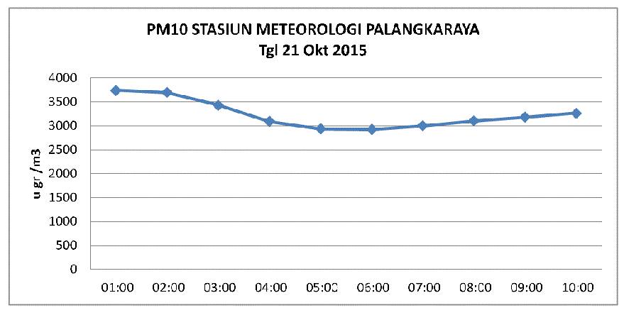 Berdasarkan pantauan lapangan pada Jumat (16/10/15) jarak pandang di Palangkaraya antara 50-150 meter. Senin (19/10/15) hanya 50-250 meter dan Rabu (21/10/15) sebesar 20-150 meter. Pada hari lain rata-rata jarak pandang sekitar 250-500 meter.