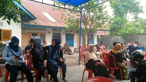 Tenda biru berdiri di depan rumah nomor 57 di Jalan Pangeran Hidayat, Pekanbaru, Riau, hari itu. Kursi plastik merah berjejer. Beberapa orang duduk sambil berdiskusi menggunakan masker. Sudah satu jam mereka disana. Pintu masuk rumah masih tertutup.