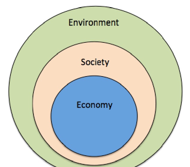 Pertama, SDGs menganut model keberlanjutan mutakhir, bukan lagi pilar (yang melihat ekonomi, sosial dan lingkungan secara terpisah) atau triple bottom line (yang melihat adanya peririsan di antara ketiganya), melainkan model nested (yang melihat hubungan ketiganya secara komprehensif: ekonomi bagian dari sosial, dan sosial bagian dari lingkungan). Ini berarti SDGs melihat bahwa tak ada tujuan yang terpisah apalagi bertentangan di antara ketiganya. Secara tegas, ini juga berarti hanya bentuk-bentuk ekonomi yang tunduk pada kepentingan sosial dan kelestarian lingkungan yang diperkenankan untuk dibangun dalam periode 2016-2030.