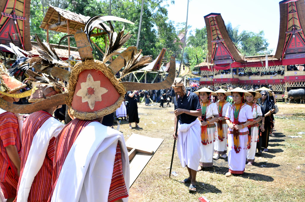 Prosesi Mantarima Tamu baru saja dimulai. Prosesi yang berarti penerimaan tamu ini adalah salah satu bagian dari ritual Rambu Solo, sebuah ritual kematian di Kabupaten Toraja, Sulawesi Selatan.