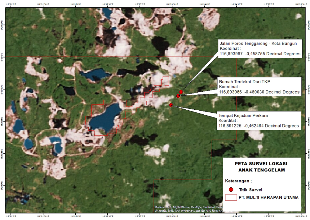 Hasil penelusuran Jatam Kaltim dan GKM juga menunjukkan, lubang bekas tambang yang menewaskan Muliadi luasnya mencapai 3 hektar dengan warna air kehijauan. Letaknya yang tak jauh dari Jalan Raya Tenggarong-Kota Bangun, membuat lubang ini mudah diakses warga maupun anak-anak yang tidak mengerti bahayanya.