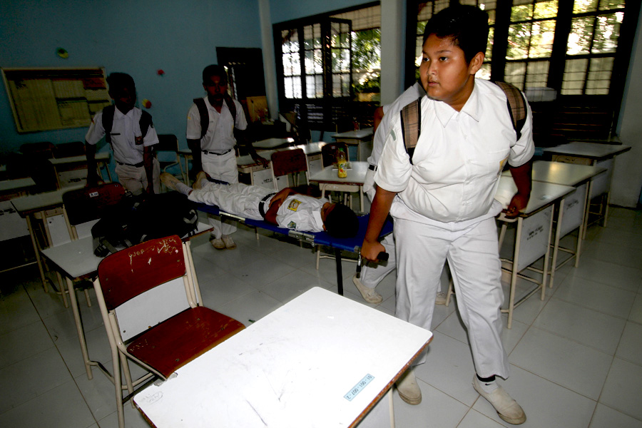 Gempa mulai mereda, para guru segera mengumpulkan para siswa di halaman sekolah. Berdasarkan hasil pendataan, ada sejumlah siswa yang masih berada di kelas. Mereka terluka, pingsan, dan ada yang trauma. Dengan sigap, anggota organisasi kesiswaan seperti pramuka dan palang merah remaja melakukan evakuasi. Saat penanganan siswa yang pingsan, terluka dan trauma dilakukan, sang kepala sekolah terus mencari informasi tentang kekuatan gempa dan kemungkinan terjadinya tsunami.