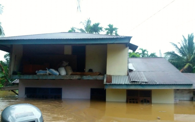 Dia mengatakan, banjir menyebabkan 2.000 rumah terendam sampai 1,5 meter, 100 hektar sawah terendam mencapai satu meter.