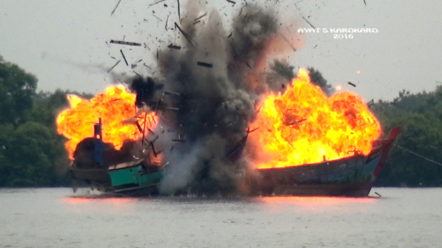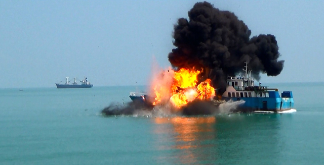 Inilah Foto dan Video Peledakan Kapal Pencuri Ikan di Perairan Belawan